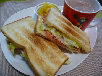 その上に③をのせてケチャップをかけ、もう一枚のパンでサンドする。