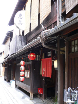 祇園の風情たっぷりの石畳の路地にある、「ぎをん恵美」というお店です。