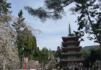 満開の桜のバックにそびえる五重塔はまた格別でした。