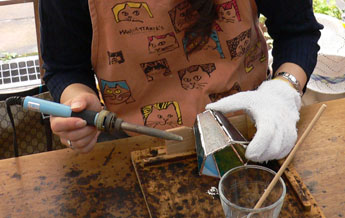 貼り終えたらいよいよハンダ付けで、ガラス同士を接着していきます。