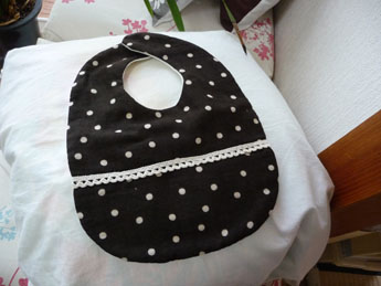 茶色のドットのダブルガーゼに薄黄色のバイアステープをつけました。