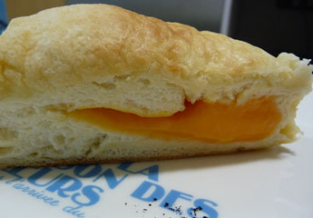 パンの中に、メロンの果肉を使用したオレンジ色のクリームが入っています。