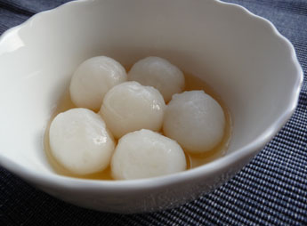 白いお団子に澄んだ黄色いシロップが爽やかで、