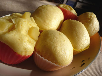 シリコンカップと蒸し器を使って、袋裏のレシピを参考に作りました。
