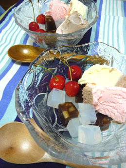 三種類のアイスとさくらんぼをのせました。