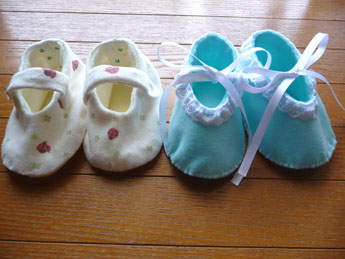 最初に挑戦したのが、切って手で縫うだけのフェルトのベビーシューズ。