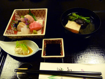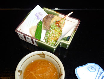 また調理場から石段を登って料理を運んでくるのは