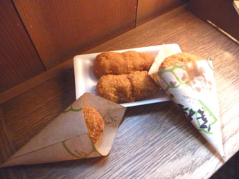 少し小さめのコロッケはポテトの中に牛肉が入っていて、