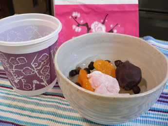 その「梅園」では、お持ち帰り用には「あんみつ」と「豆かん」が、