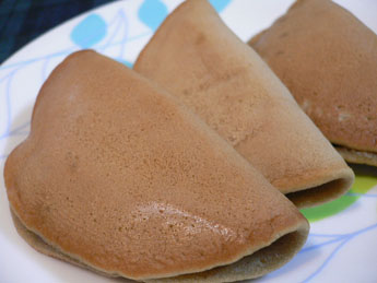 黒糖を使ったどら焼の皮を半分に折ってあんこを包んだ、