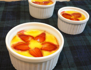 半分に切って、ブリュレに花びらのようにのせて焼きました。