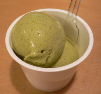 スプーンを入れると鮮やかなグリーンのムースが顔を出し、