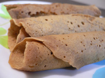 フライパンで薄くクレープのように焼いてくるくると筒状に丸めます。