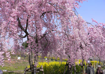 たくさんの枝垂桜が満開を迎えています。