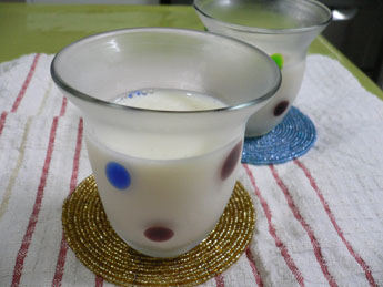 1.甘酒を牛乳で好みの濃さに割って、300ccにする
