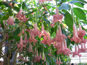 頭の上からはエンジェルストランペットがまるで電灯のカサのように