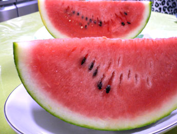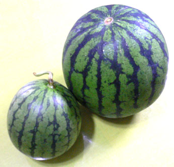 大きいのは赤いすいか、小さいのは黄色いすいかです。