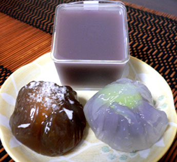 葛饅頭と黒糖の葛饅頭、そして夏らしく水羊羹を買いました。